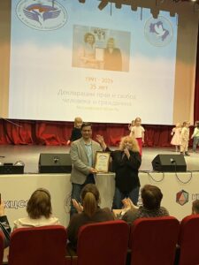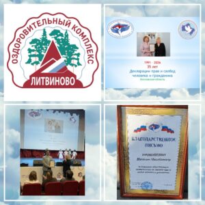 Перед началом концерта заместитель руководителя филиала ОК «Литвиново» Мария Анатольевна Бельченко вручила помощнику Уполномоченного по правам человека в Московской области в Наро-Фоминском городском округе Николаю Михайловичу Прокопенко благодарственное письмо от Уполномоченного по правам человека в Российской Федерации Татьяны Николаевны Москальковой. Высокая награда была вручена «за активную общественную деятельность по защите прав и свобод человека и гражданина».