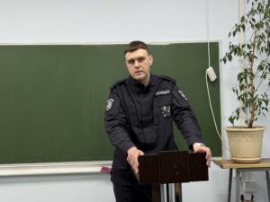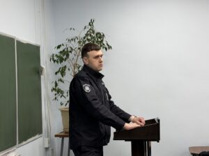 Заместитель командира роты патрульно-постовой службы по воспитательной работе УМВД России по Наро-Фоминскому городскому округу майор полиции Дмитрий Волков, совместно с представительнецей Общественного совета при УМВД Еленой Скрипко, провели беседу со студентами старших курсов местного колледжа.