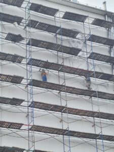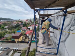 В городе Туапсе Краснодарского края продолжается работа по росписи мурала с изображением святого апостола Симона Канонита
