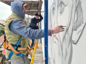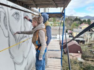В Туапсе — продолжается работа по росписи мурала с изображением святого Симона Канонита.